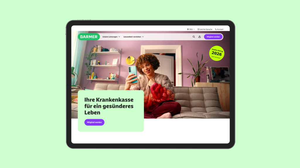 From day one, digital services sit at the heart of the design. You notice this at first sight in the bright green that is optimized for screens yet still typically BARMER. But you can also experience it in the clear user journeys and in the uncompromising standards of accessibility. So every member can quickly find what they need. Including powerful tools for a healthy life.
